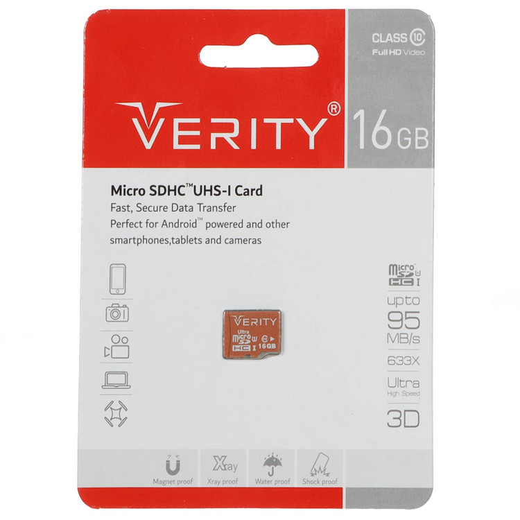 کارت حافظه وریتی مدل U106 ظرفیت ۱۶ گیگابایت کلاس ۱۰ سرعت ۹۵MB/s